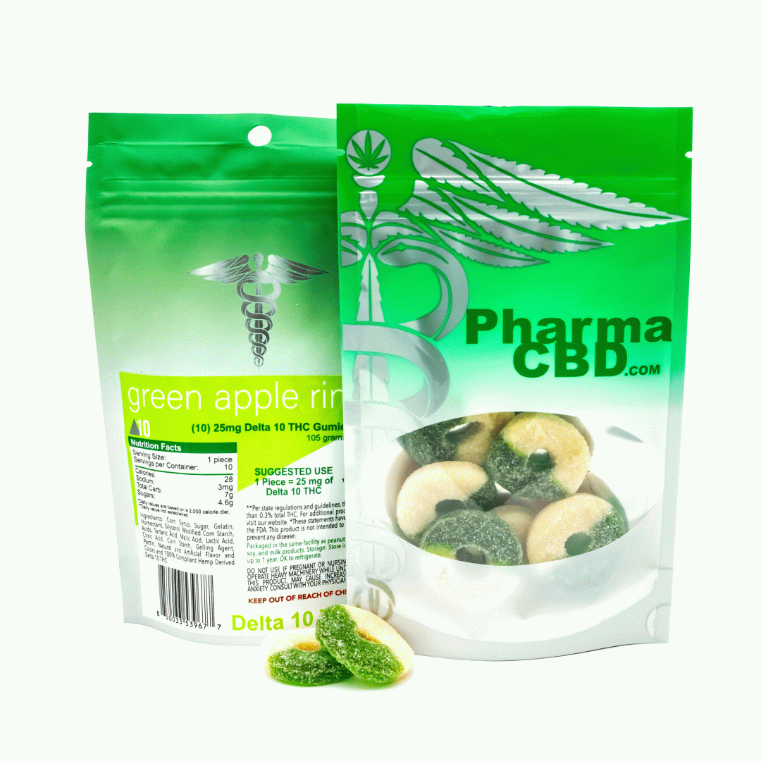 Buy Delta-10-THC Green Apple Rings UK Gummies Online. Green Apple Gummy Rings – 1500mg THC are a high-potency cannabis edible designed for those who enjoy strong effects and a sharp, sour-sweet candy flavour. The PharmaCBD Delta-10 Green Apple Rings gummies contain 25 mg of Delta-10-THC per gummy and have a delicious apple flavor.
